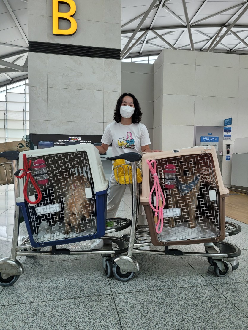 평택 시보호소 구조견 포쉬와 시흥 시보호소 구조견 매기가 평생가족을 만나기위해 출국합니다. 아이들과 동행해주신 이동봉사자님 진심으로 감사합니다.