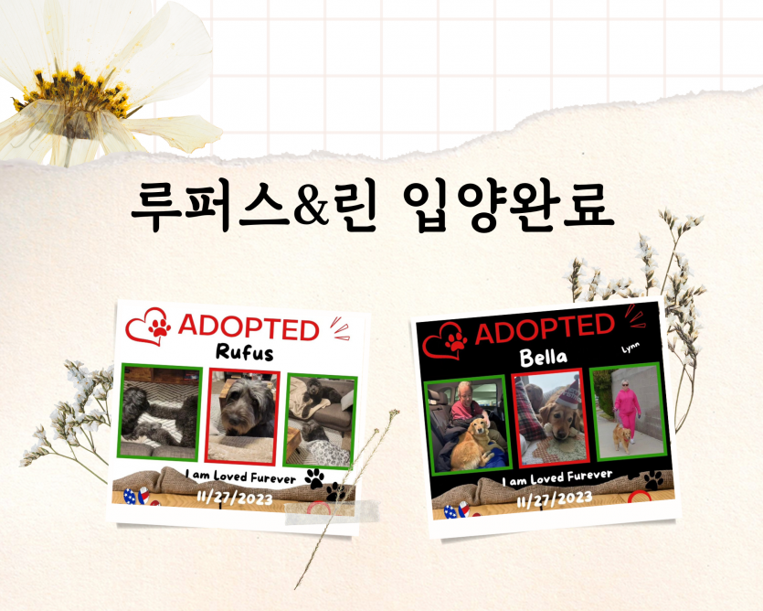 해외입양/출국 [입양] 루퍼스 & 린 페이지 정보 작성자 한국리트리버레스큐 댓글 0건 조회 570회 작성일 23-12-06 01:08 목록 본문 :) 이전글[임보] 하이 23.12.06 다음글[입양] 팔코, 웨스틴 23.11.23 댓글 0 댓글목록 등록된 댓글이 없습니다.